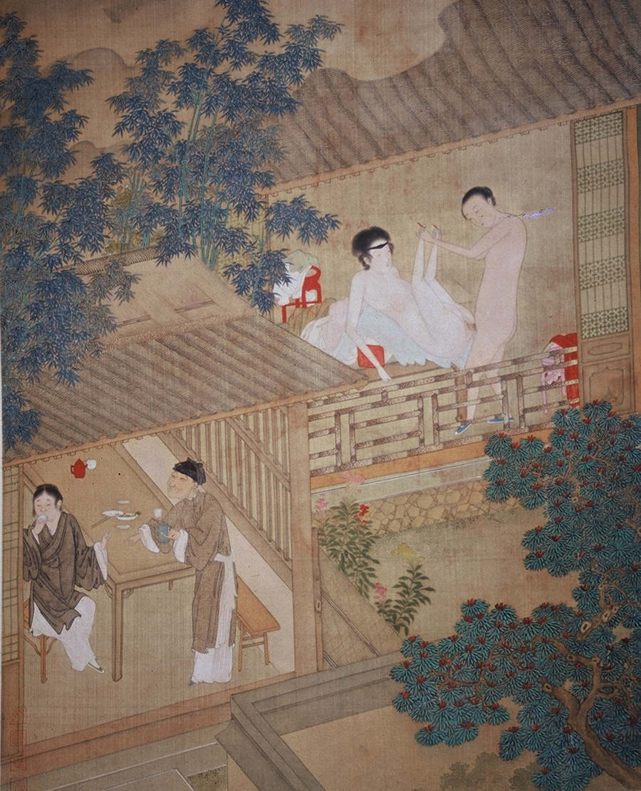 Erotic illustrations also experienced emancipation from texts, and were produced and circulated in the form of fascicles or albums. Collecting these albums, usually of great quality, was a popular hobby of the literati during late Ming, the time during which Jin Ping Mei was being written.38 These erotic albums contained not only erotic prints but also erotic paintings, which were presented in scrolls like conventional paintings.39 Most of these collections disappeared during the Qing dynasty, but a great bulk of them survived in Japan, to which they were imported during the early Tokugawa period, which coincided with the end of the Ming and the zenith of this artform.
