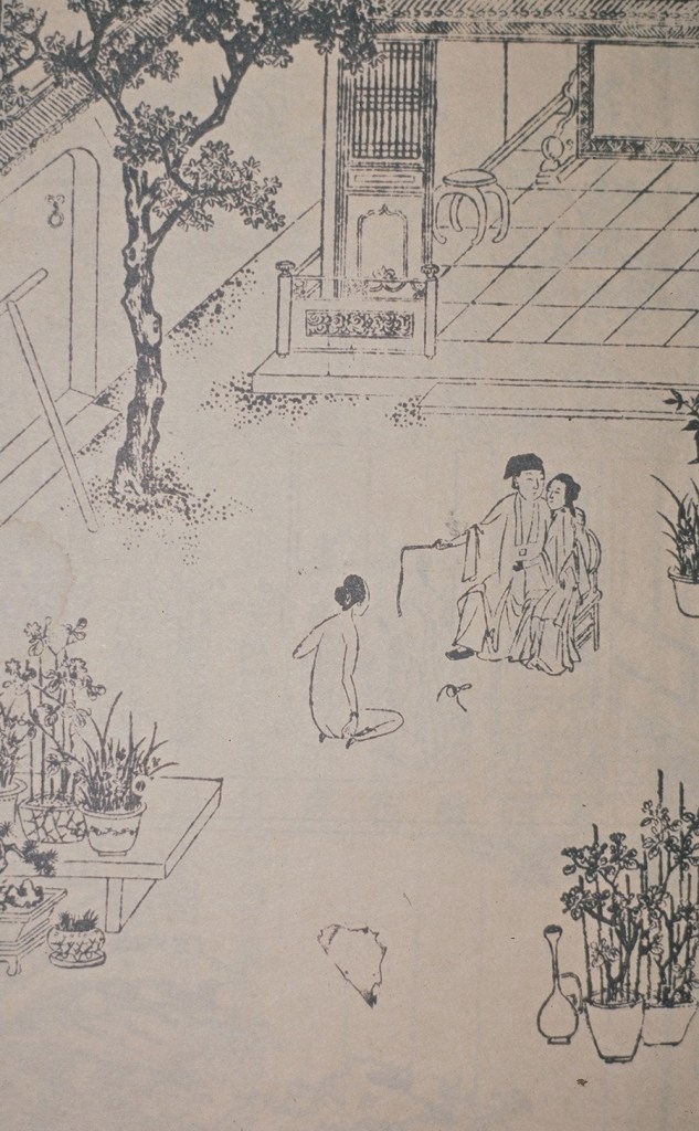 Printed illustration received a huge transference of technical knowledge and conventions from traditional painting media. Some woodblock carvers became famous and their work sought after, and like painters, carvers built their niches in particular themes. At the peak of its popularity, some famous painters even tried out producing their own printed illustrations, such as Cheng Hongshou (Fig.1).26 The increase in prestige of printed illustration divided the tasks within the printing industry: during the late Ming, printing text and printing illustration were conducted by different people.27 This was a signal of the growing appreciation of illustrations as objects independent from text, and the acquisition of their own particular values, which would eventually blend with those of popular fiction in late Ming-early Qing illustrated fictions.