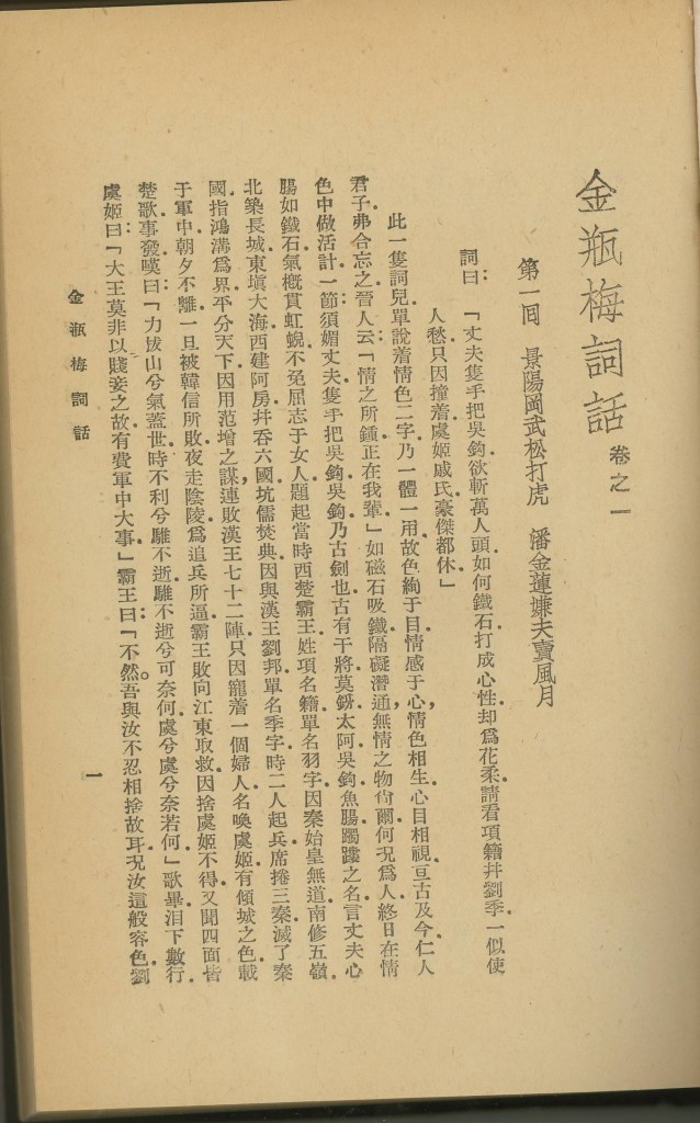 The origins of Jin Ping Mei are still surrounded by a veil of mystery, constantly brought up to debate among scholars of the novel, which as it is customary in Chinese academia has its own field name, jinxue (金学, jīn xué). The letter mentioned at the beginning of this essay is the earliest firsthand account of the novel, but it is obvious from what it discusses that the novel had been already written (at least great deal of it) by the time of the letter (1596), and had been already circulating in manuscript form for some time. Robert Hegel speculates the conceiving of the first manuscript of Jin Ping Mei as early as 1582,40 while the first mention to the whole work was on 1607.41 Jin Ping Mei might have had a first edition on 1610, but the earliest that have survived is from 1617, which was a cihua.
