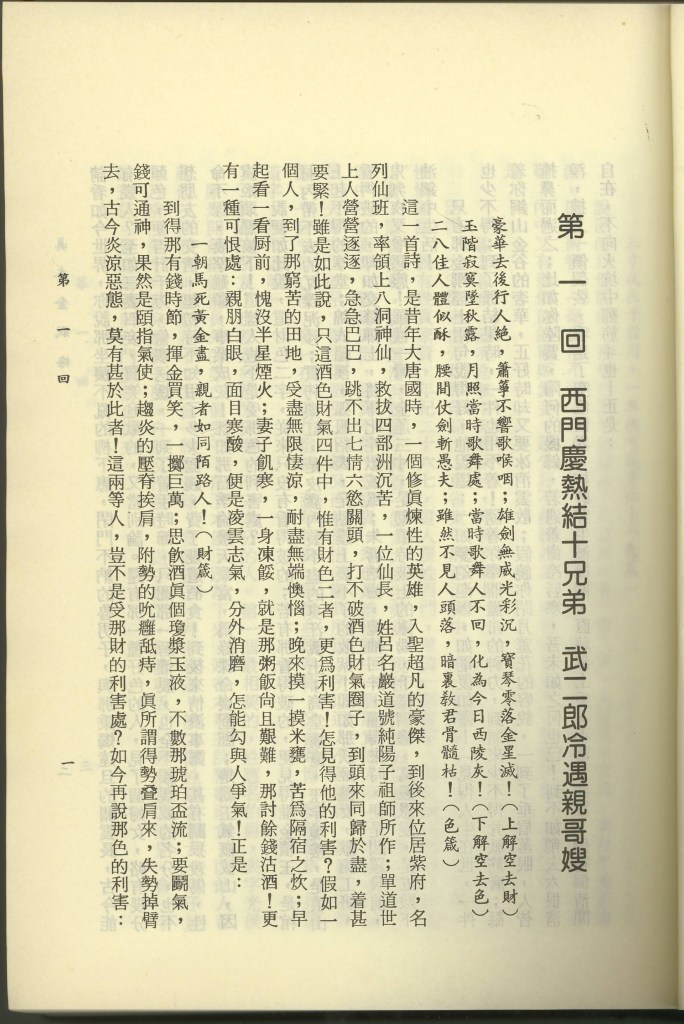 llustrations in books were not a novelty in China, but during the Ming era they became quite popular and their value quickly changed and diversified. There are ongoing debates over whether printed illustrations depended on the text to have value, or on the contrary they held value on their own as autonomous artifacts. This is contingent to the time and type of illustration and book, but also, and I would like to stress this point, the expected experience of consuming the artifact. The reader of an illustrated book is different from that of non-illustrated books or independent illustrations, not only in social status, but also in consumer behavior. The act of reading an illustrated book during the late Ming, such as the Chongzhen edition of the Jin Ping Mei, is a unique experience that combines the implications of consuming different media: printed fiction and printed illustrations.