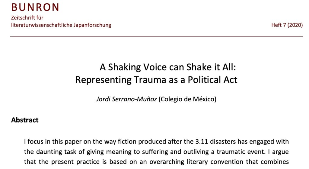 (2020) “A Shaking Voice can Shake it All: Representing Trauma as a Political Act,” Bunron no 7, 2020. DOI: 10.11588/br.2020.7.13587