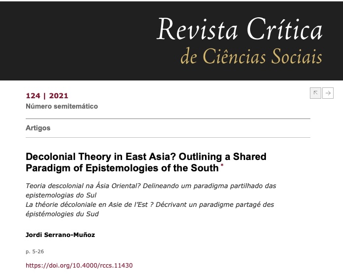 (2021) “Decolonial Theory in East Asia? Outlining a Shared Paradigm of Epistemologies of the South,”Revista Crítica de Ciências Sociais 124, 2021.
